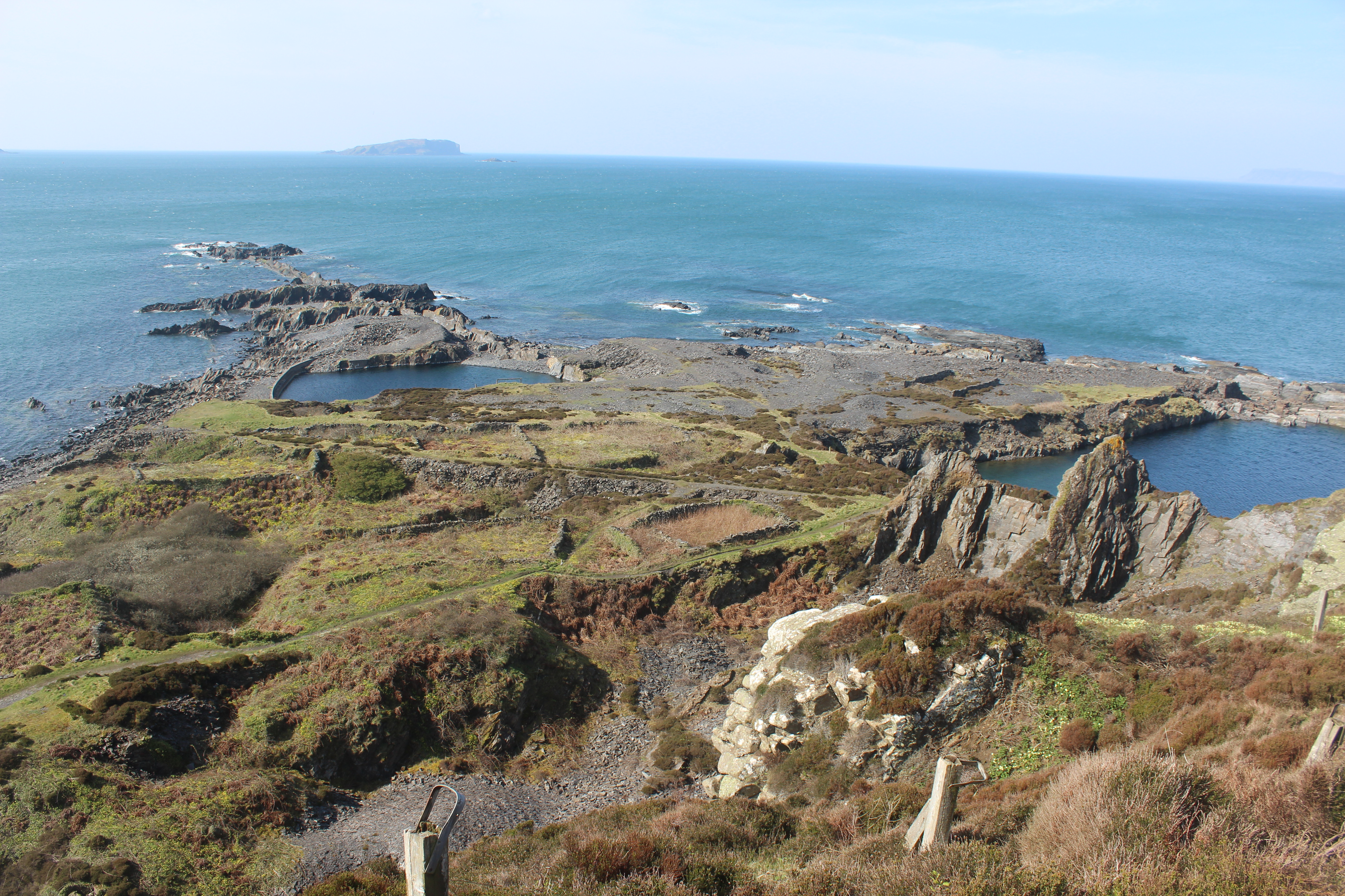 We spent that night in Oban and decided to go on a minor detour the following morning before we started the drive home. We drove to the Isle of Seil, crossing the Clachan Bridge (a Thomas Telford construction also known as The Bridge Over the Atlantic’. Bob was keen for us to hop over to Easdale, a small island off of the west coast of Seil and so we caught the little boat over and spent a while wandering around this fascinating little island. I was very amused by all of the wheelbarrows near the harbour, which the residents of the island use for carting things about. We walked around the circumference of the island, seeing the old slate mines that became disused when they were flooded. We bagged the island high point (of course) and then stopped at a lovely little café before we got the boat back.