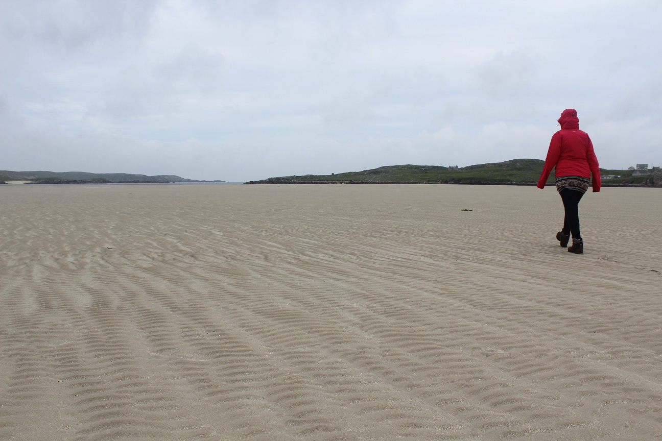 We travelled on to Uig, spotting a couple of large sculpted chess men replicas on the way there, and arrived at the biggest beach I’ve ever seen. Although it’s not the widest beach, with the tide out it was quite a walk to reach the sea and we were cautious not to spend too long near the water’s edge in case the tide started coming in quickly as we’d have had a long way to run back to shore! We followed this walk up with a stop off at the museum and café in Uig. There was a little more information about the chessmen at the museum, but also some really interesting exhibit pieces showing what life was like for those living on Lewis in the past.