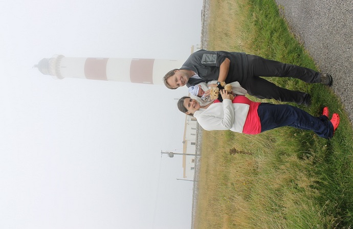 little lighthouse bagger1Of course, it was never going to be long before Seumas visited his first ever lighthouse after joining us in the outside world. Although we were all keen to be home after being released from Raigmore Hospital, we made the effort and took a slight detour to Tarbet Ness lighthouse. Although it was just as misty as the first time I’d visited this lighthouse, we managed to get a family picture including Seumas’s Association of Lighthouse Keepers teddy bear.