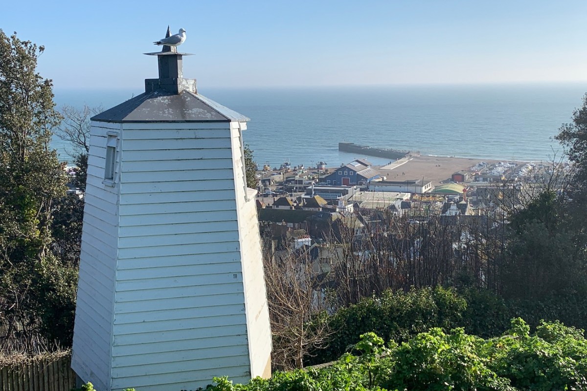 On the way back we took a slight detour, although I’m not sure slight is the right word when you take into account the traffic in the south! I had a little lighthouse tidying to do along the south coast with the first being Hastings. Visiting these places has been a very helpful way of testing how useful my access notes and grid references for finding the lighthouses are. The Hastings West Hill tower is really straightforward to find. It’s another one that is unique in style and it has some really interesting little details – I will let the picture speak for itself. This lighthouse actually replaced one that was previously on Hill Street, marking the upper of two lighthouses. The Lower Light can still be seen opposite the boating lake, although it is no longer in use as a lighthouse. From West Hill you have some wonderful views down to the beach which is lined with boats. I’d not seen that anywhere before.