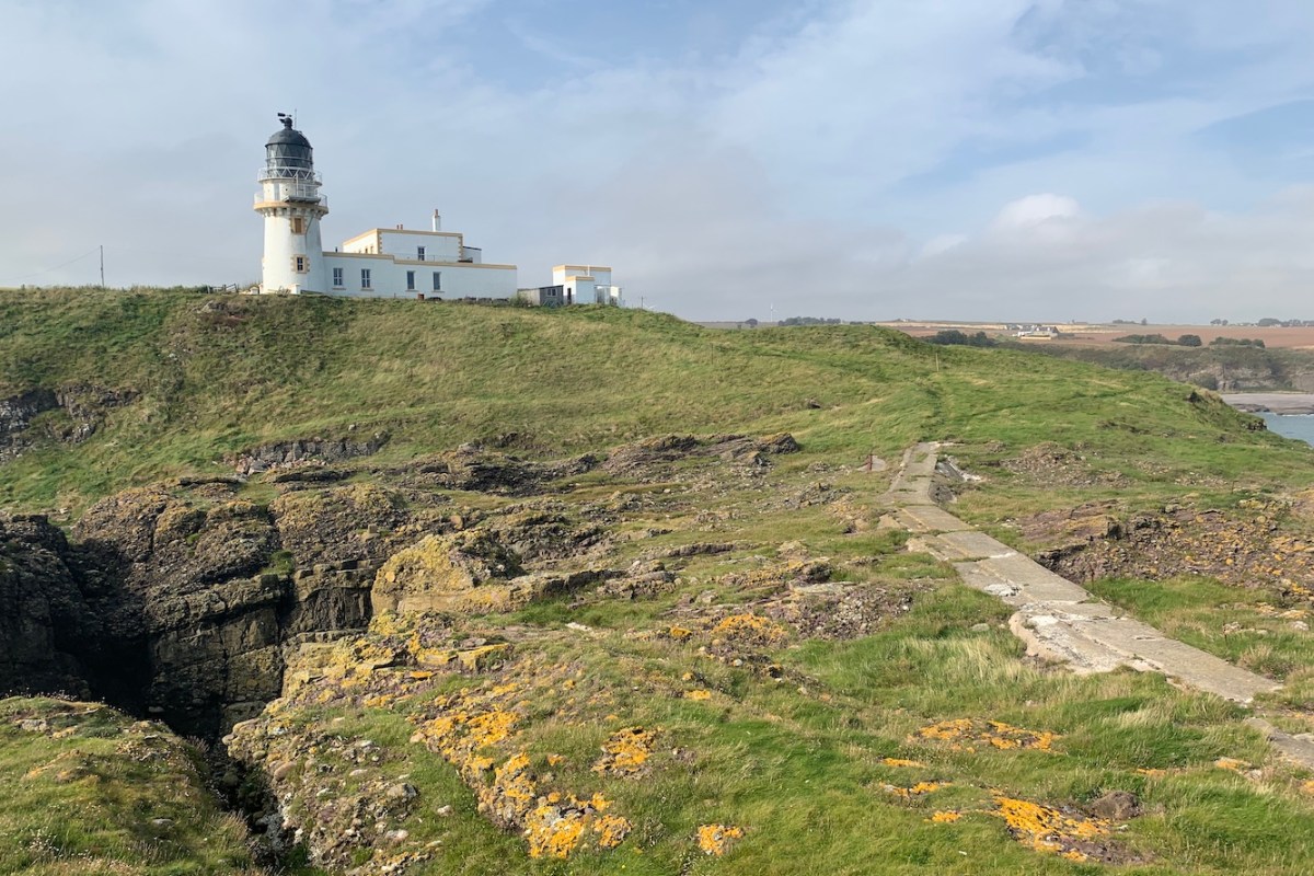 Leaving our accommodation just to the south of Aberdeen, we decided to pay a quick visit to Tod Head lighthouse while we were in the area. I really like Tod Head, it has a wonderful silhouette. We parked up and had a quick wander around – I say quick because we were keen to get to Ferryden and walk along to Scurdie Ness for the start of the event at 11am. I hadn’t really gone beyond the lighthouse before, so I thought I’d give it a try as the headland looked nice in itself and I expected the views back to the lighthouse to be wonderful. I wasn’t wrong. Why had it taken me so long to go for a walk down there?! There are the remains of an old concrete path with old pipes alongside leading towards the edge of the headland. We later discovered this was where the foghorn used to be, although nothing remains of the foghorn building itself now. When I received a message from Bob asking where I was I thought it was probably time to head back.