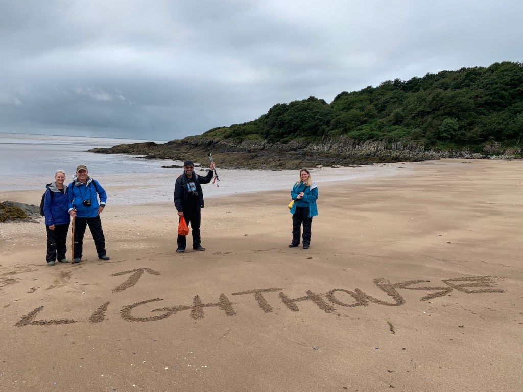 After a brief chat with the people staying at the holiday accommodation at the nearby farm we set off towards the gate and were very pleased to discover two empty fields with no cows to contend with. Aside from a muddy section the walk was easy and it was such a fantastic feeling to see the top of the tower emerge over the hill. I am particularly fond of this type of lighthouse and it was wonderful to see a new one of these close up. John clearly shared my joy by giving the lighthouse a hug alongside me. It’s almost as if the weather knew what a happy moment it was as it sent in blue sky shortly after we‘d arrived.