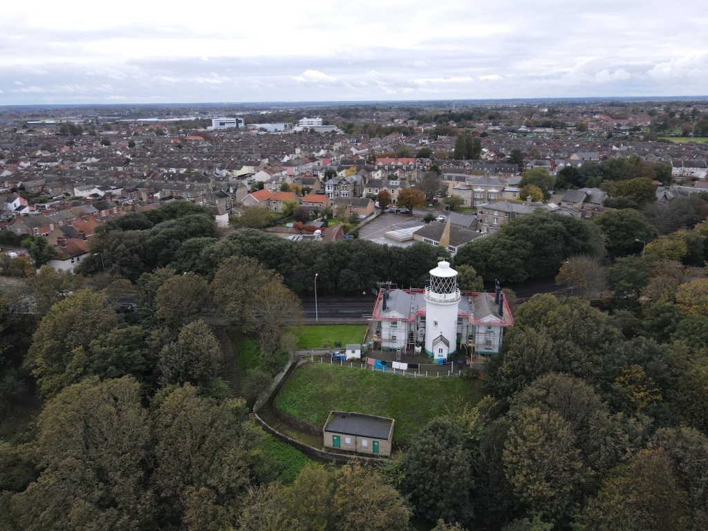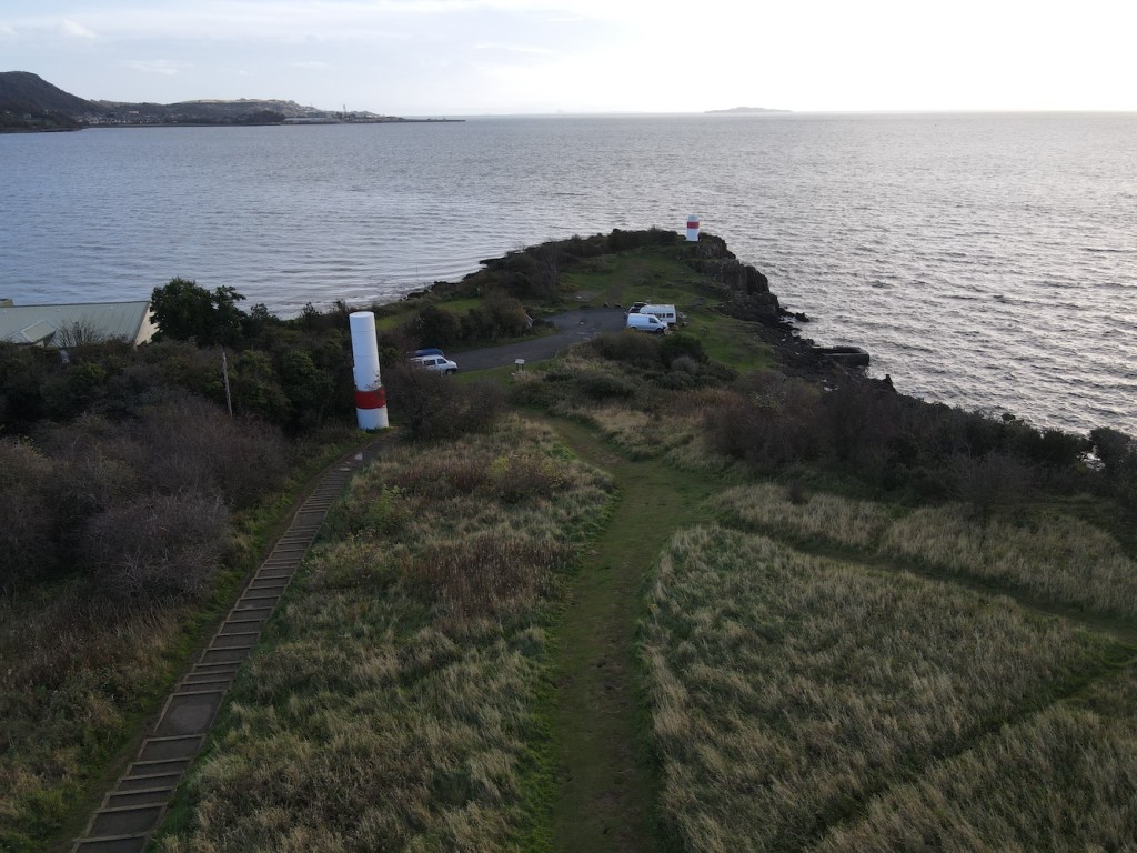 Now that we were equipped with Joe the Drone though it was time to check it for ourselves. While I kept the kids entertained by walking to each of the lighthouses and then up the nearby steps which gave great views across the Firth of Forth (Oxcars lighthouse was clearly visible), Bob sent Joe up to investigate. It very quickly became clear that there is indeed a hatch on top of the tower which allows access to the light itself.