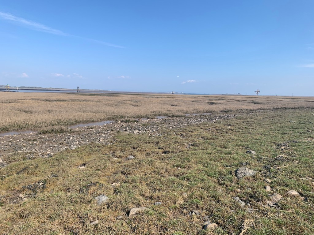 Passing through Barrow-in-Furness we arrived on Walney Island and found somewhere relatively sensible to abandon the car in Biggar. The OS map showed a footpath running down to the east coast of the island from here and this was really straightforward to find, passing along a narrow grassy area between two fields. Initially the walk was easy enough once we got to the coast, heading north and then east. After a while it began to get a bit wetter underfoot and I was very grateful to have had my wellies available for this walk. Again, it’s another area that becomes flooded at high tide. We stuck to fence line though to try and avoid, as much as possible, the wettest areas. At one point we needed to cross a stream about a metre wide and Bob checked it out first to test how deep it was. Fortunately it wasn’t high enough to go over the top of our wellies so we carefully waded through it and then continued on our way.