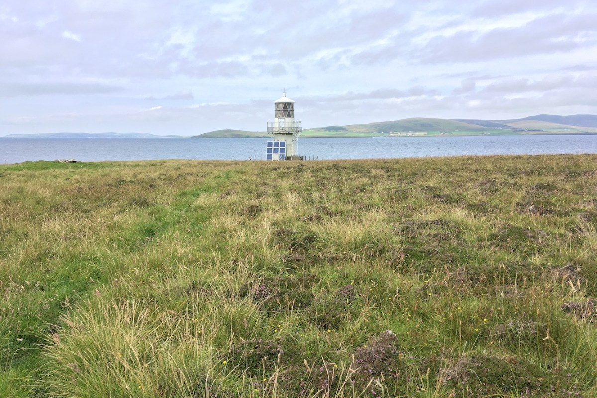 It was the turn of the island baggers to get a bit more done so I chilled out on the boat for a while. A few islands later we reached Cava. After dropping the lads off at the bottom end of the island to walk over the high point and meet us at the top, John and I had a lovely beach landing just to the south of the lighthouse. This visit was a good one as it marked John’s final lighthouse on Orkney. He’d seen it from the ferry, but it was the only one he’d not got close to. Once we reached the highest point on what is referred to as the Calf of Cava (the little bit at the top of the island that is joined to the main island by a narrow strip of beach and grass), the view really opened up and we could see the lighthouse with the coastline of Mainland Orkney in the background. A fantastic view to approach the lighthouse. Once we were at the lighthouse John did a celebratory star jump and we wandered around the lighthouse to get views from all angles. It’s a wonderful little spot. The rest of the group joined us a little while later and it was then time to make our way back to the boat.