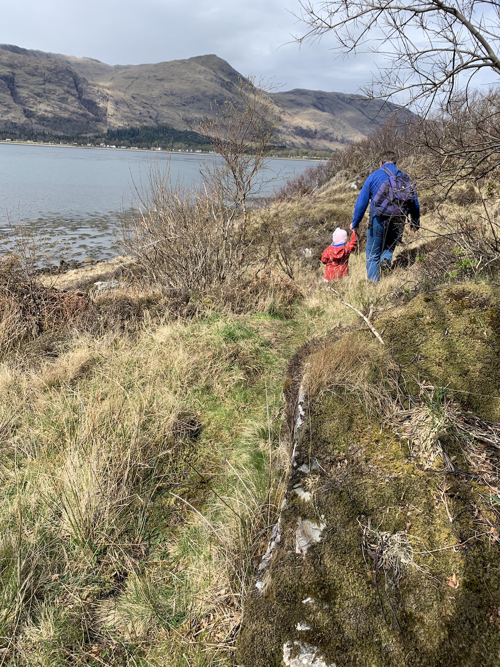 I’d spent quite some time looking at maps prior to the trip to work out the best approach. It seemed over land probably wouldn’t be ideal as there looked to be houses about. I know the Scottish laws make many areas very accessible, but it’s usually best not to push it and risk being shouted at, especially when we had the kids with us. A coastal approach seemed best. Onich seemed the obvious starting point, but again it wasn’t clear where you could park without it becoming a long walk for the kids. I also looked at a Bunree start from the caravan site.