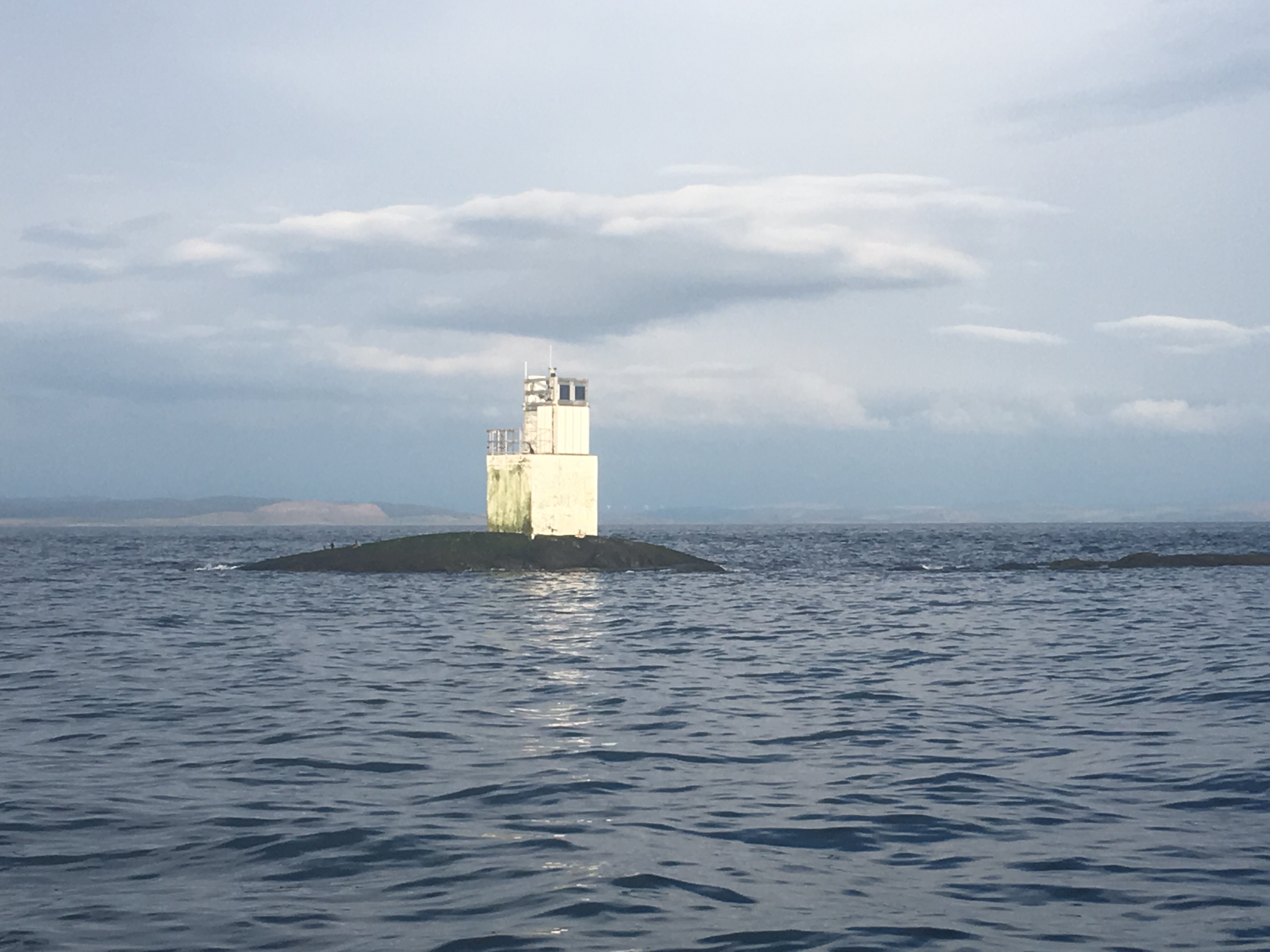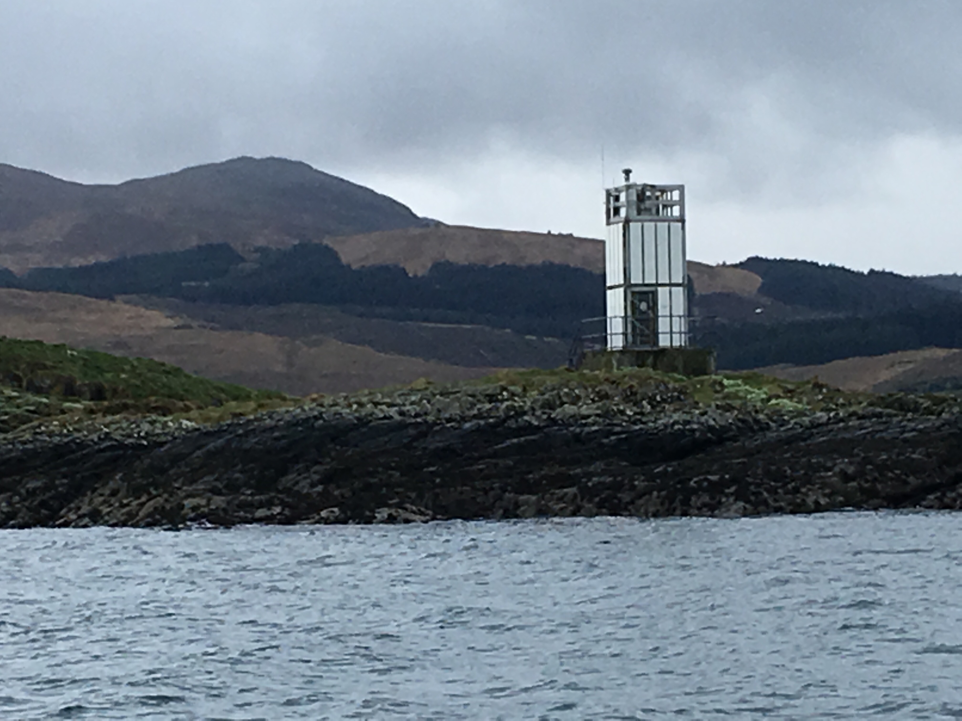A little while later we passed Oban and obviously saw Dunollie and Lismore lighthouses. We also sailed close to Lady’s Rock, a rock completely submerged by water at high tide, where a husband allegedly abandoned his wife only to then see her wander into the pub later that day after she was rescued by a passing fisherman. An interesting story, that one. Lady’s Rock now features a lighthouse. It’s a different one as the base is solid concrete while the top section is like a layer of the flat-pack design (like Sgeirean Dubha or Na Cuiltean), but the flat-pack section is clad in red rather than white panels.