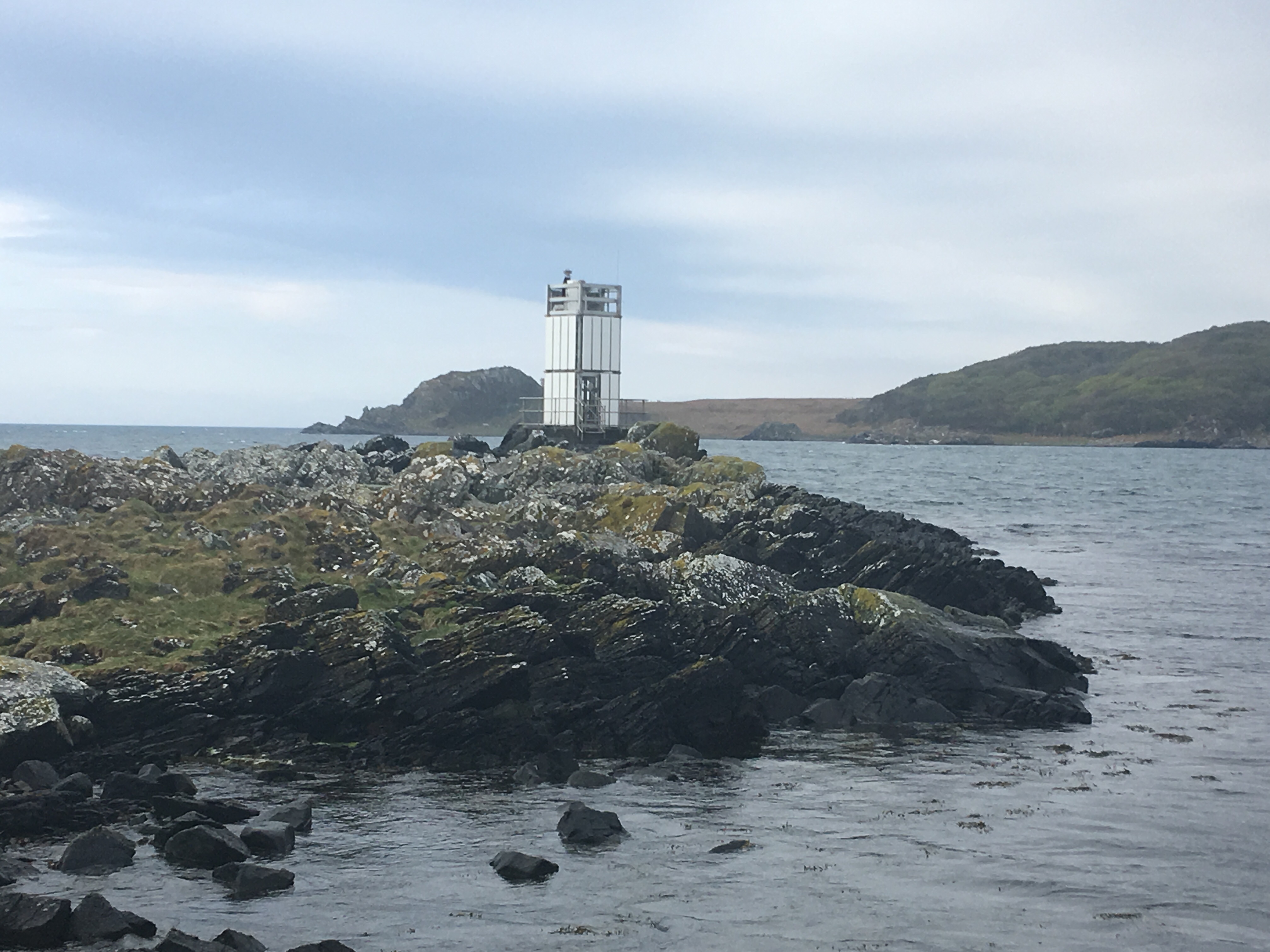 I have got a little behind with these posts due to having too much fun on the West Coast Adventure. On Saturday, day three of the adventure, we had another lighthouse and island-filled time. Setting off from Kilchoan it was only a short journey to our first stop, Ardmore Point on the north coast of Mull. The sun was already shining bright and the sea was fairly calm, which made landing on the rocks below the lighthouse straightforward. The lighthouse sits a little way up from the sea so we needed to find an appropriate route up, which was a bit of a struggle for me – although Bob was leading the way so I really just needed to follow him. John joined us too and it was only after we’d spent a while clambering up onto the rough grass that we spotted the skipper hopping across the rocks and taking what looked like a much more direct route. I didn’t enjoy the walk to the lighthouse, but as usual the lighthouse managed to cheer me up. Although the tower itself is a standard flat-pack (with multitudes of solar panels), it differs from most others in that it is accompanied by an extra little building.