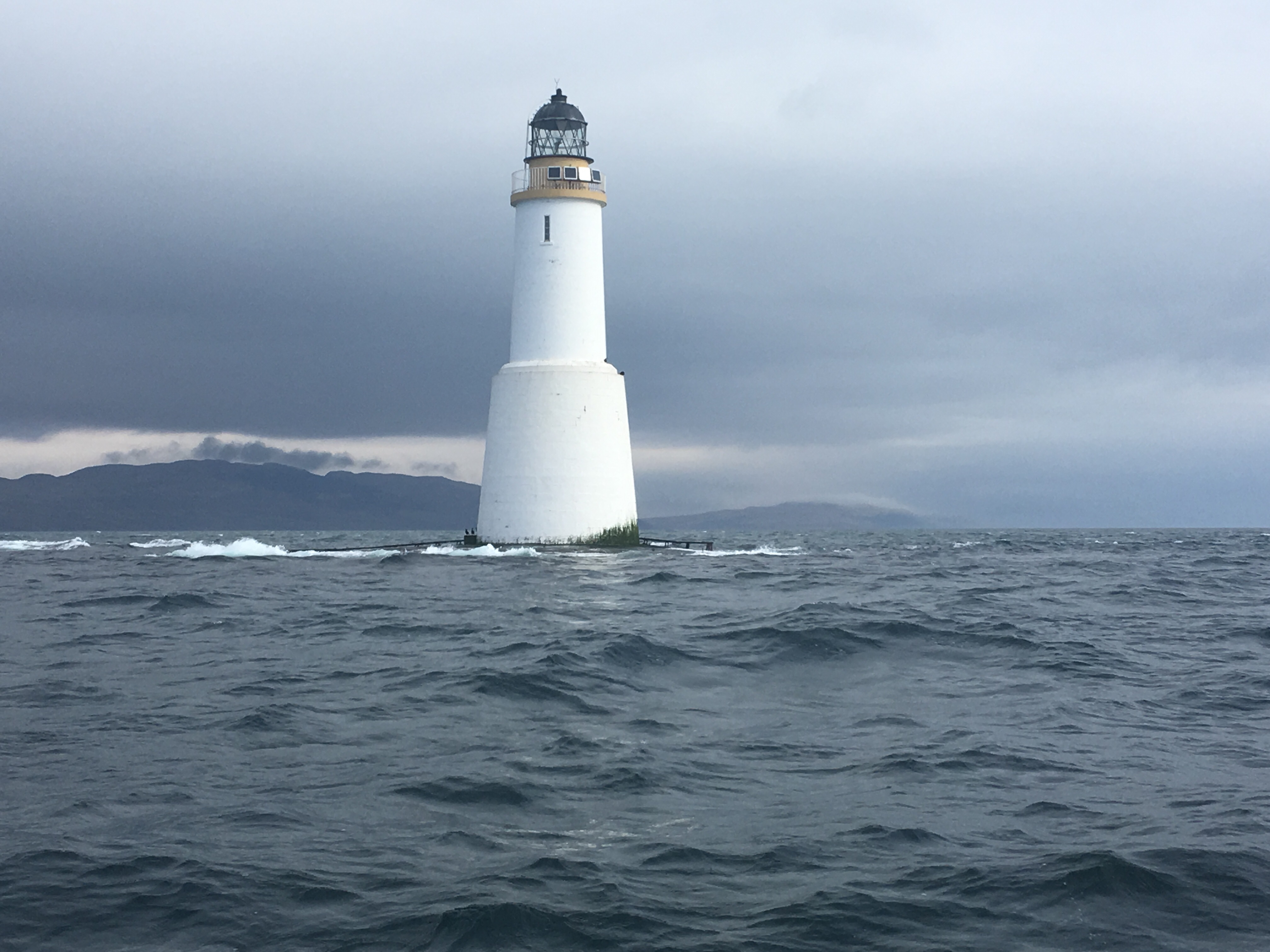 Our journey is, in general, taking us north so we needed to sail around the Mull of Kintyre, which for a lighthouse bagger like me is never a problem. We caught sight of the more modern foghorn first, which I’d never realised was there. A short while later the Mull of Kintyre lighthouse came into view. The height of the cliffs there dwarfs the lighthouse, but it was fantastic to see from the sea. It’s not something I ever thought I would see. It takes some effort to get there by land, but is worth it.