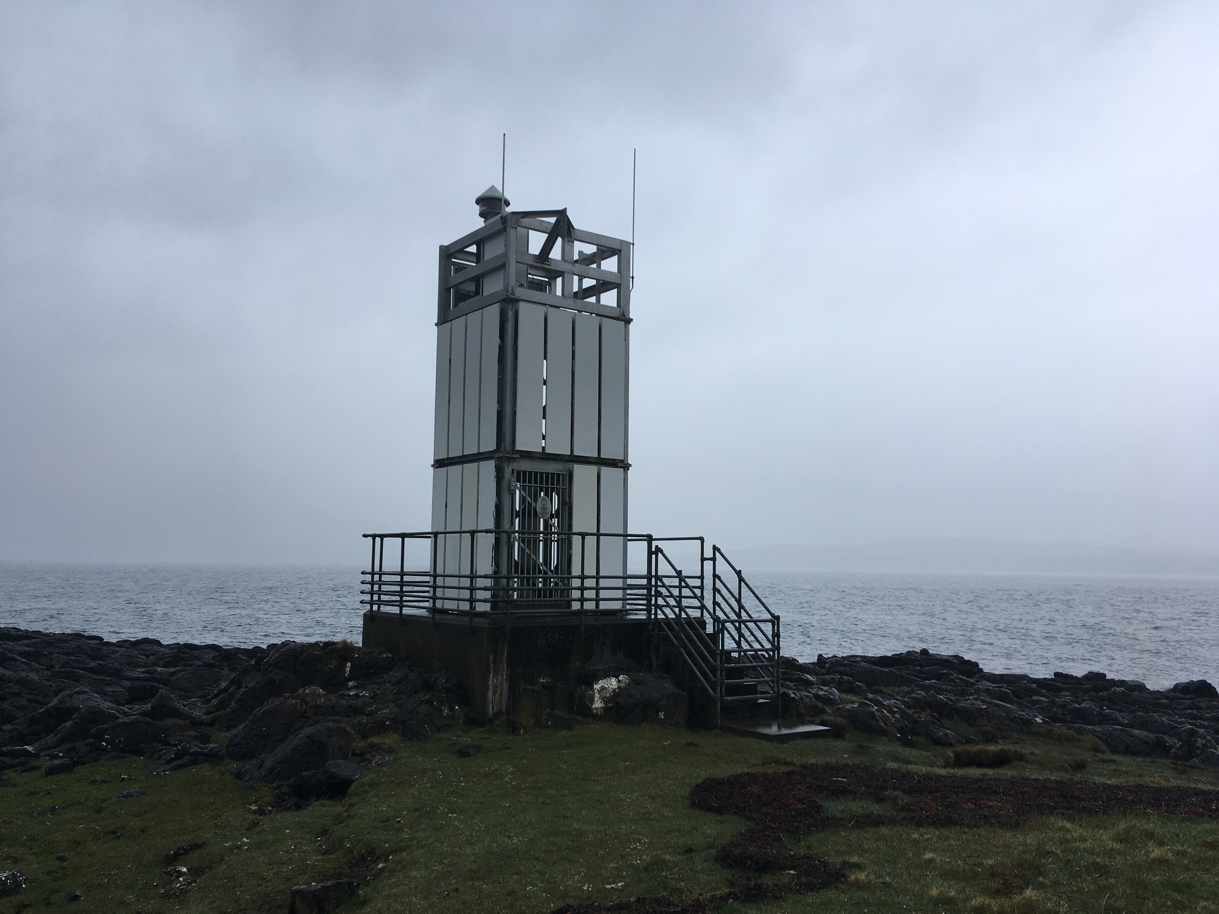 Ardtornish was our penultimate stop of the day. Bob, John and I managed to land here at the little steps, presumably used by the Northern Lighthouse Board to access the tower. Once off of the rocks it was a really easy walk along the grass to reach the lighthouse. Again, there’s not much to be said about it, and the visit there was possibly not quite as fun as it would have been if it hadn’t been raining.