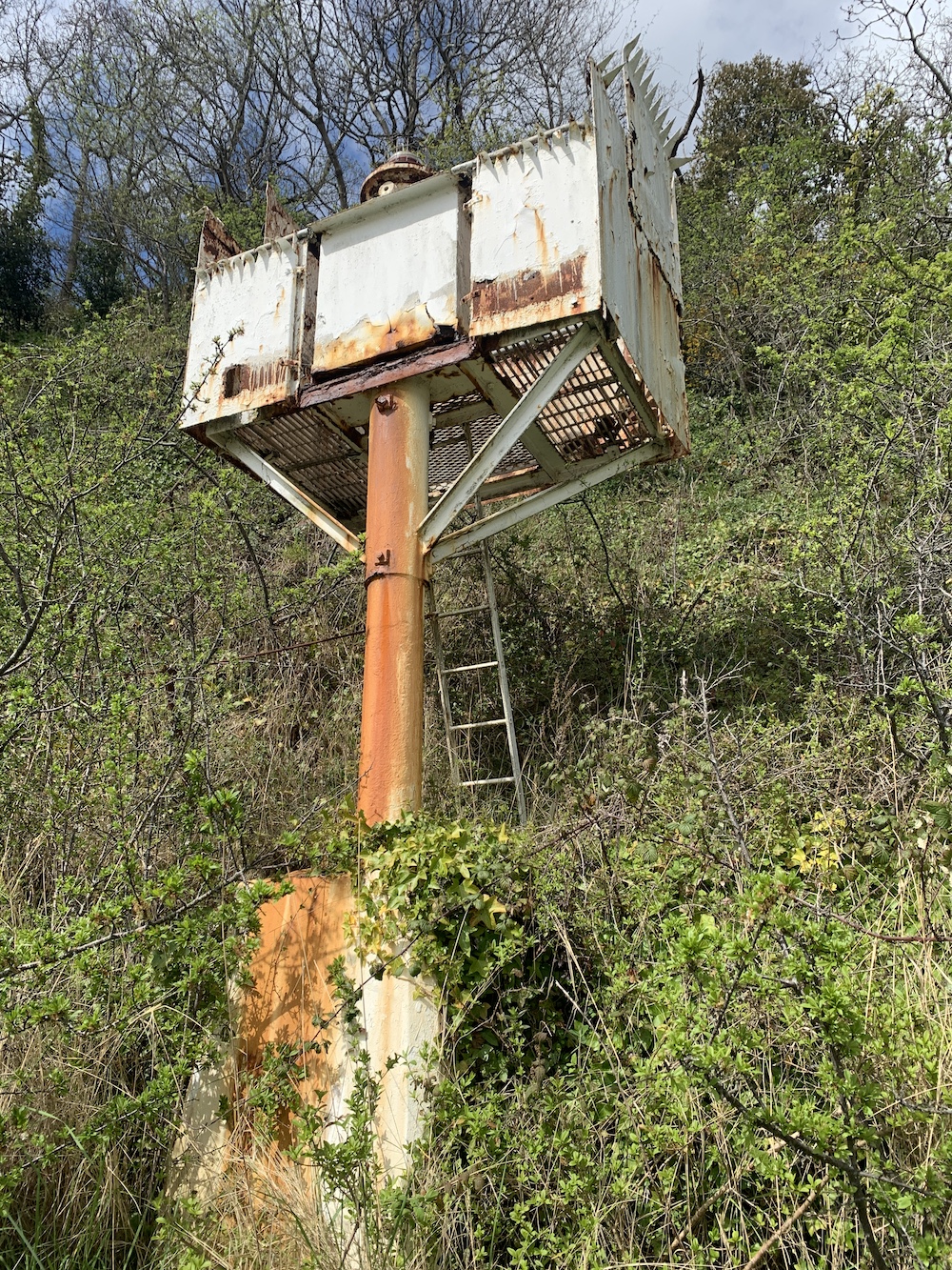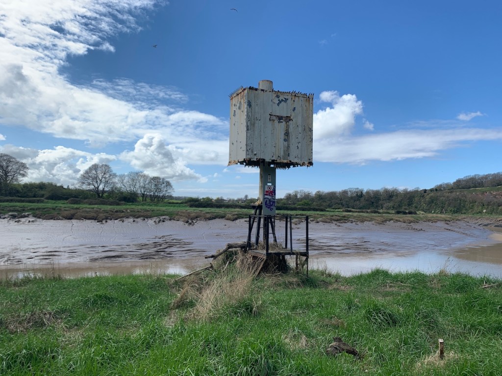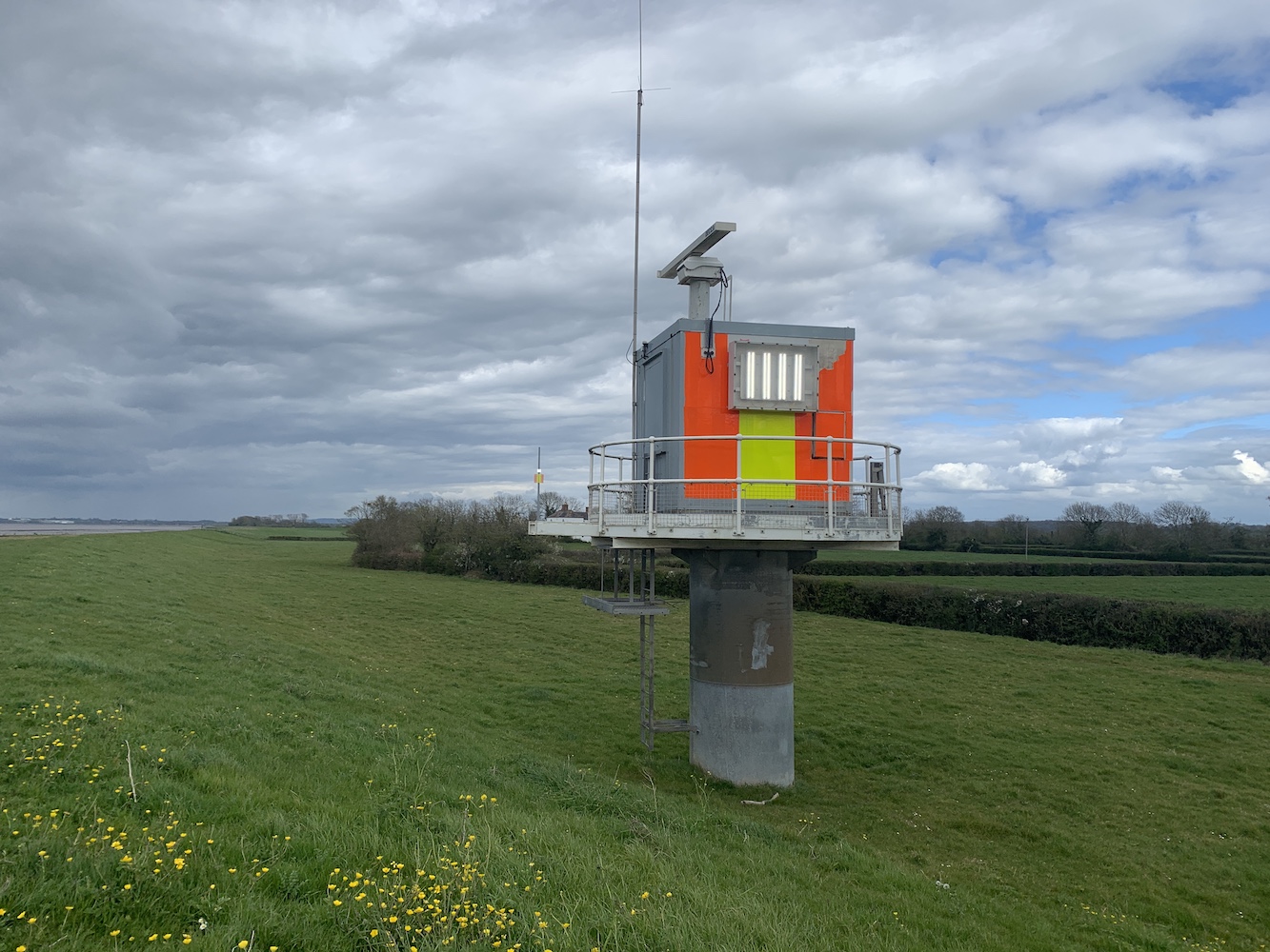 Heading further east now and to the River Severn, the next destination was the very interesting box on a pole that is the Sheppardine front light. This one is super easy to access from the very end of Shepperdine Road where there is a parking area and the road comes out straight onto the Severn Way. It’s just a short walk east along the river then to reach the tower. The rear of the range lights – a tall pole with lights and day mark – can be seen nearby too. This is another really unique one and makes you wonder what they were thinking when they designed it. It has a radar on top too so the box room may well need extra equipment inside and the pole that it sits on top of gives it the extra elevation it needs.