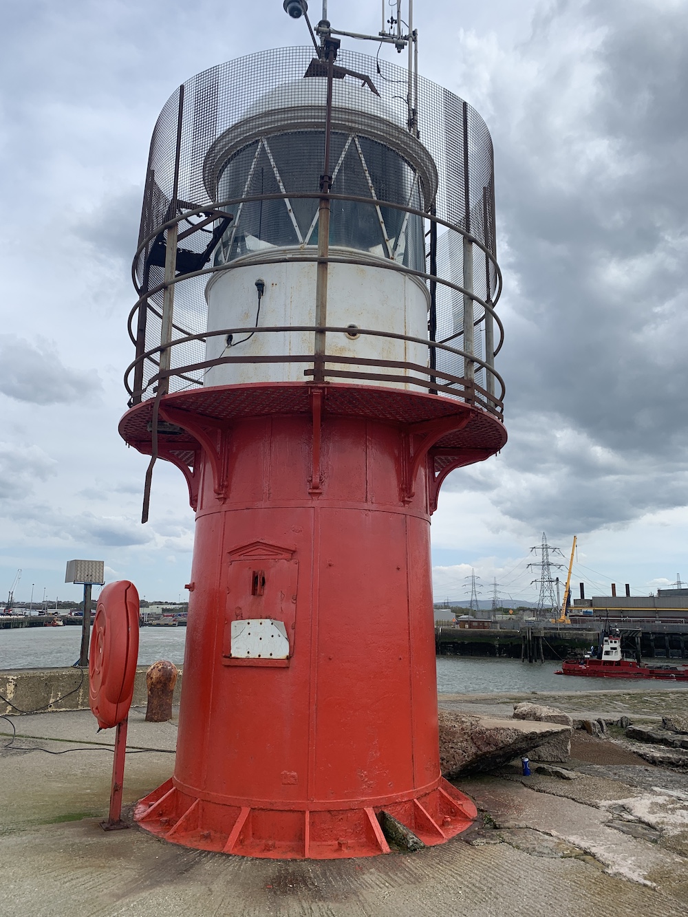 The lighthouse here is a funny thing, even I will admit that. It’s an oddly shaped white glass reinforced plastic tower, which is very much a different coloured version of the light at Cardiff Barrage. Probably understandably there’s not a lot of information out there about it.
