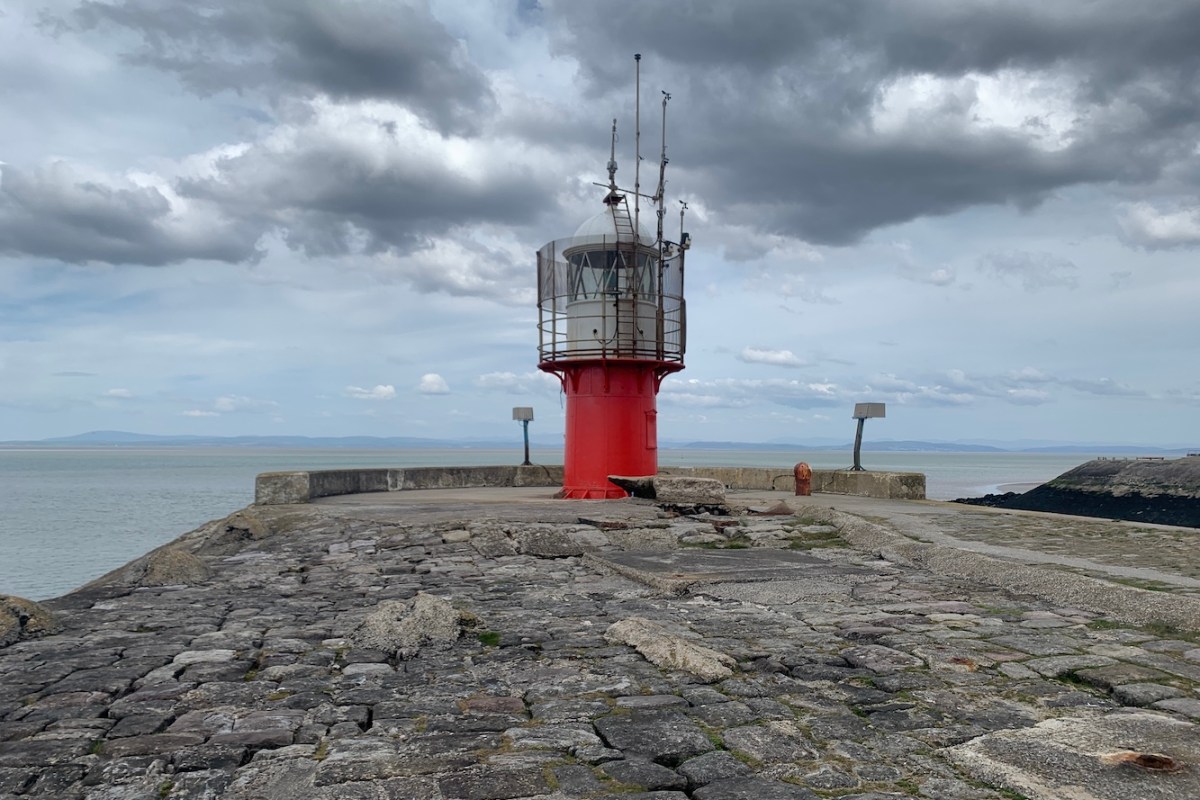 Heysham South Pier Lighthouse with the old pier remains in the background