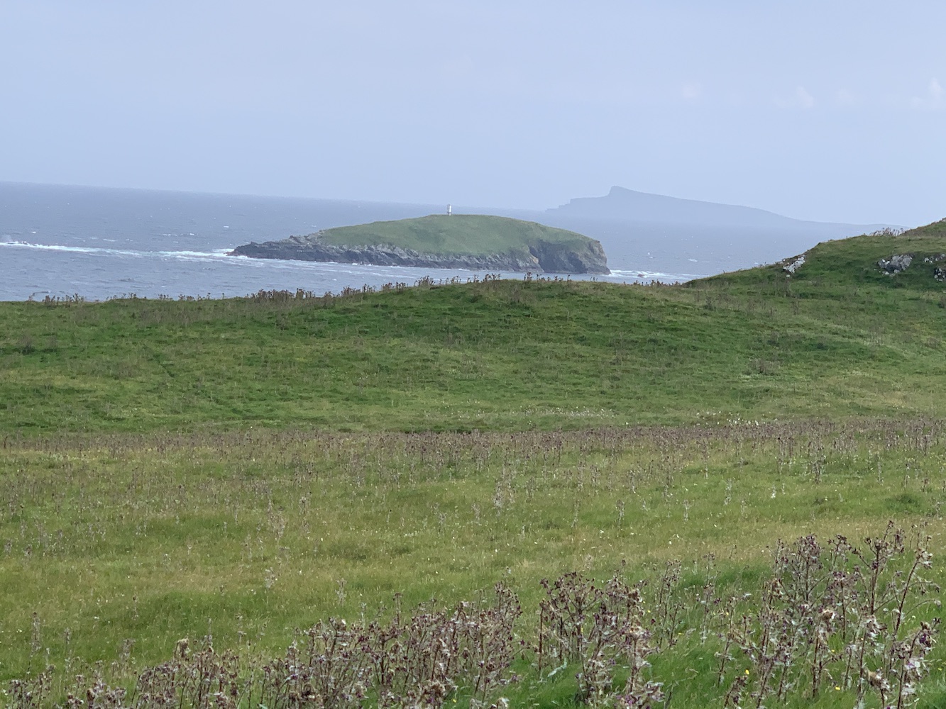 From here we headed inland across a slightly boggy section of land before returning to the field we passed through and then onto the track.